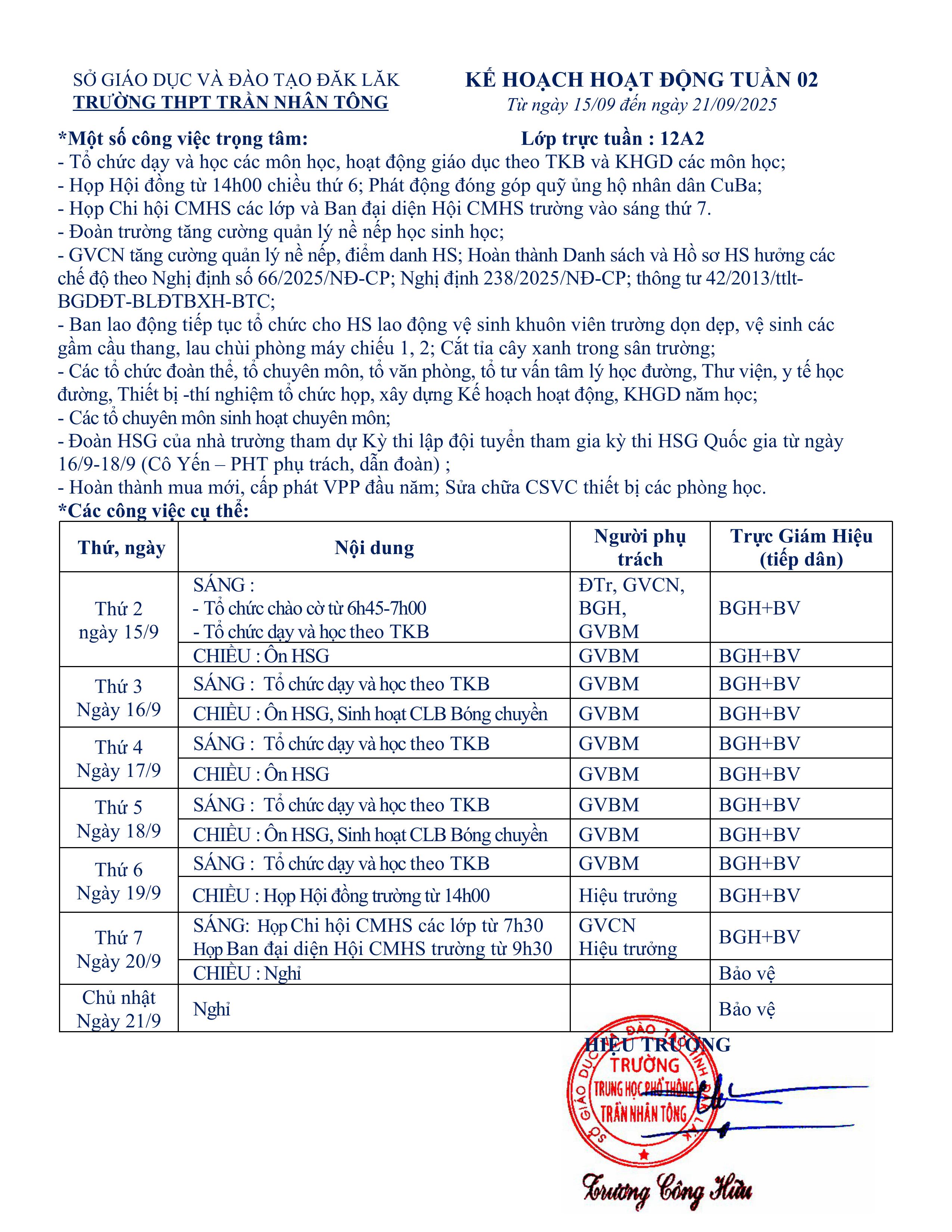 KẾ HOẠCH TUYỂN SINH VÀO LỚP 10 NĂM HỌC 2025-2026 TRƯỜNG THPT TRẦN NHÂN TÔNG