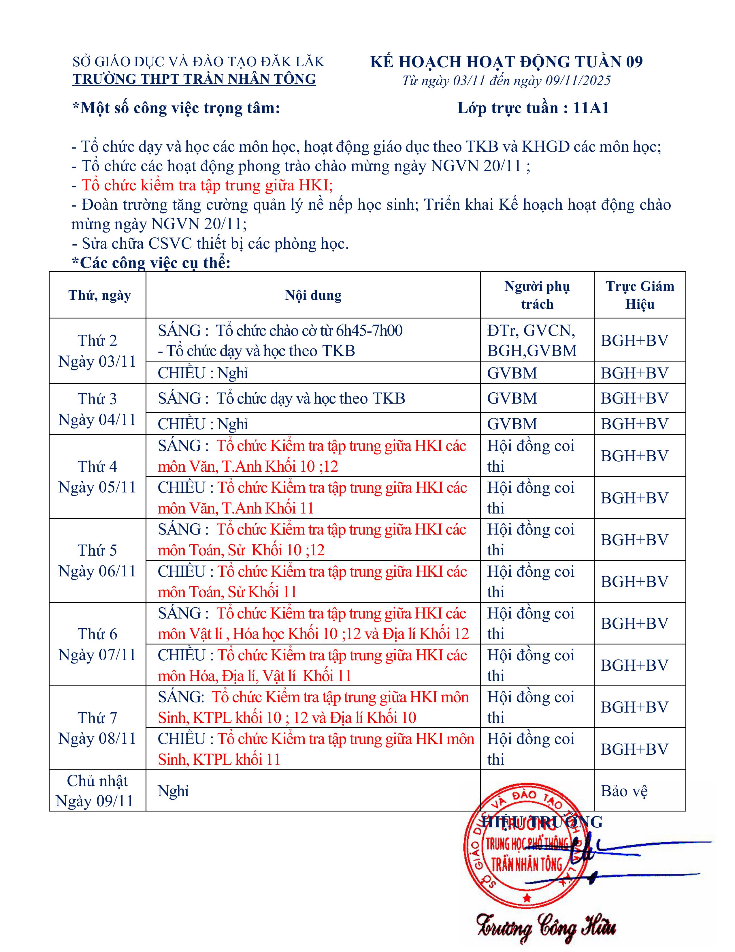 TKB Sáng lần 1 năm học 2025 – 2026 áp dụng từ ngày 05/9/2025