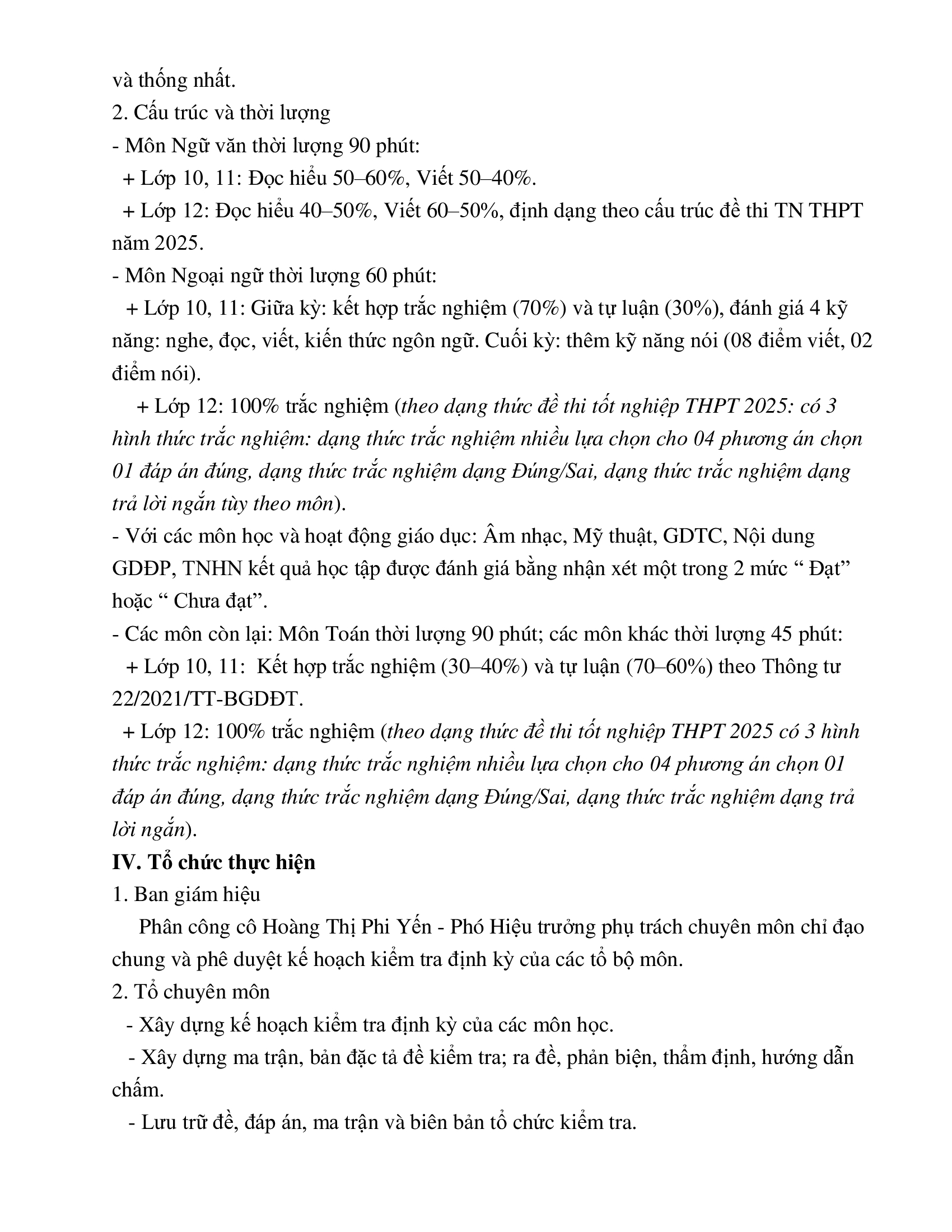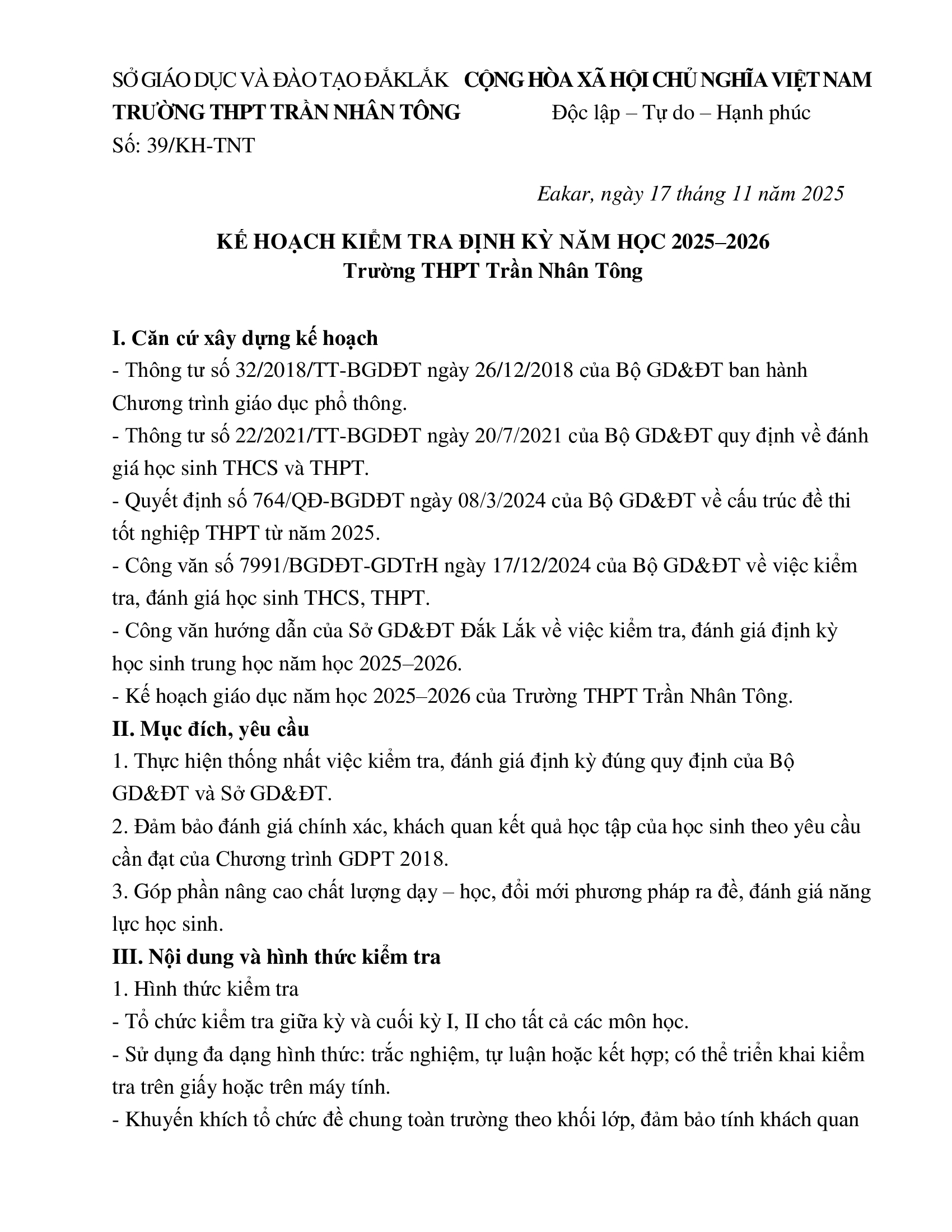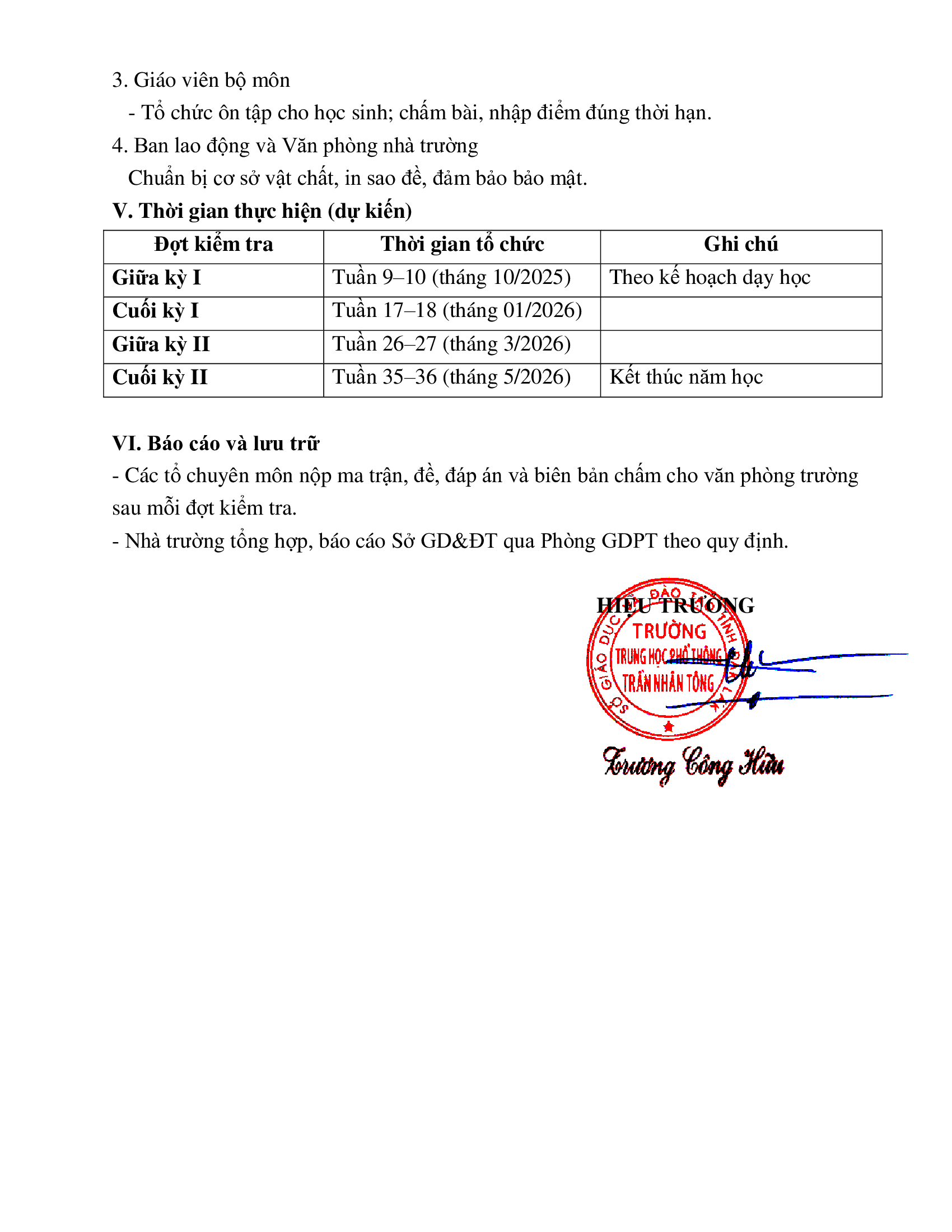 KẾ HOẠCH KIỂM TRA ĐỊNH KỲ NĂM HỌC 2025–2026