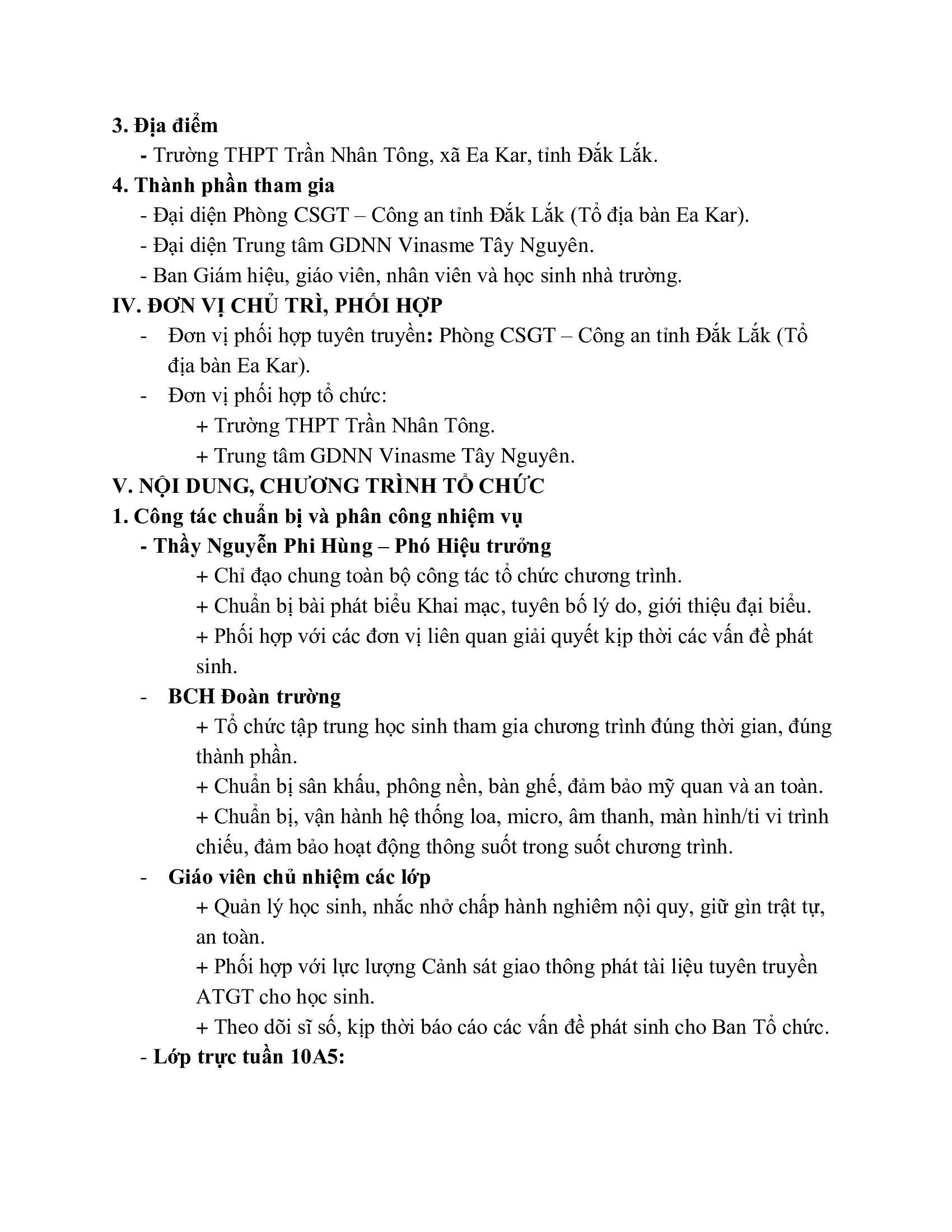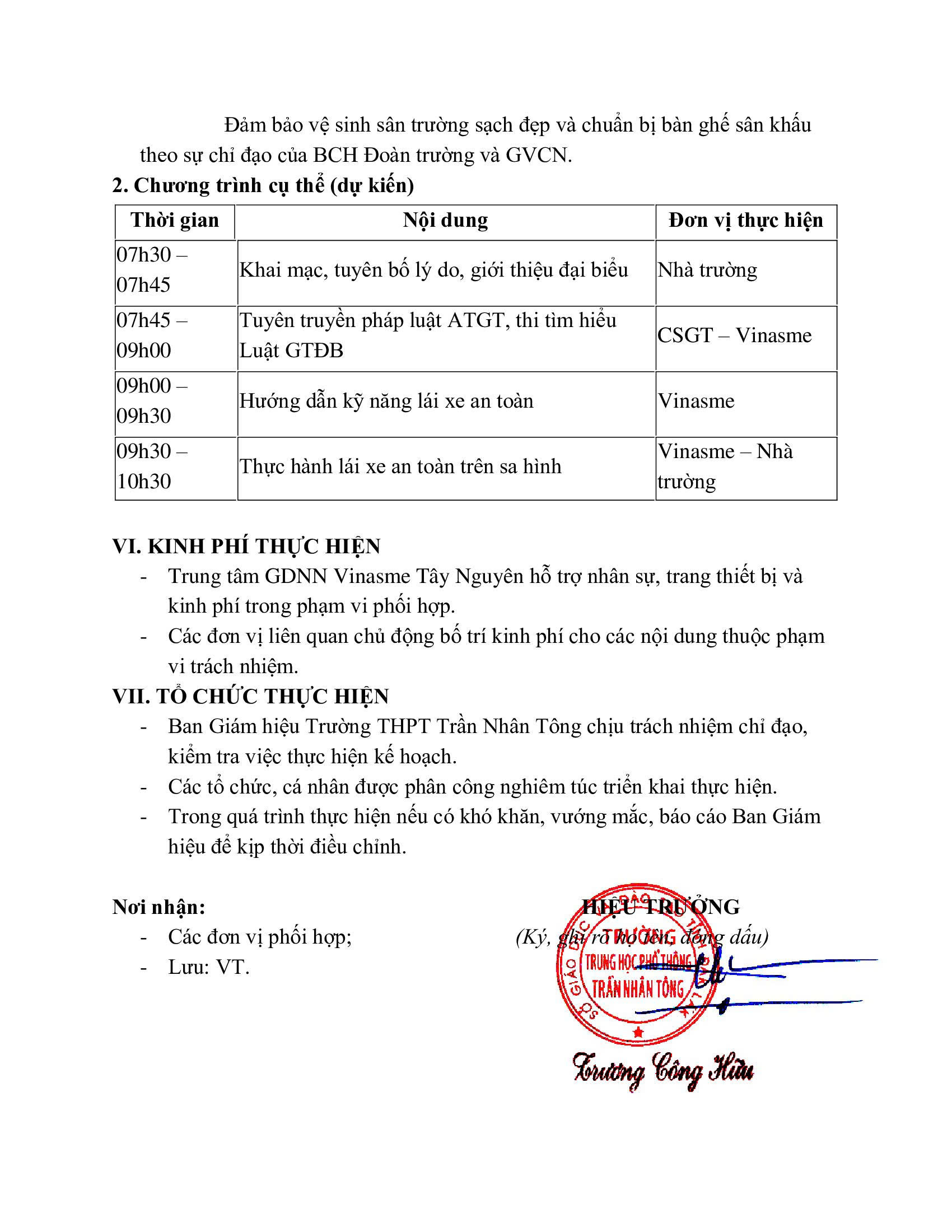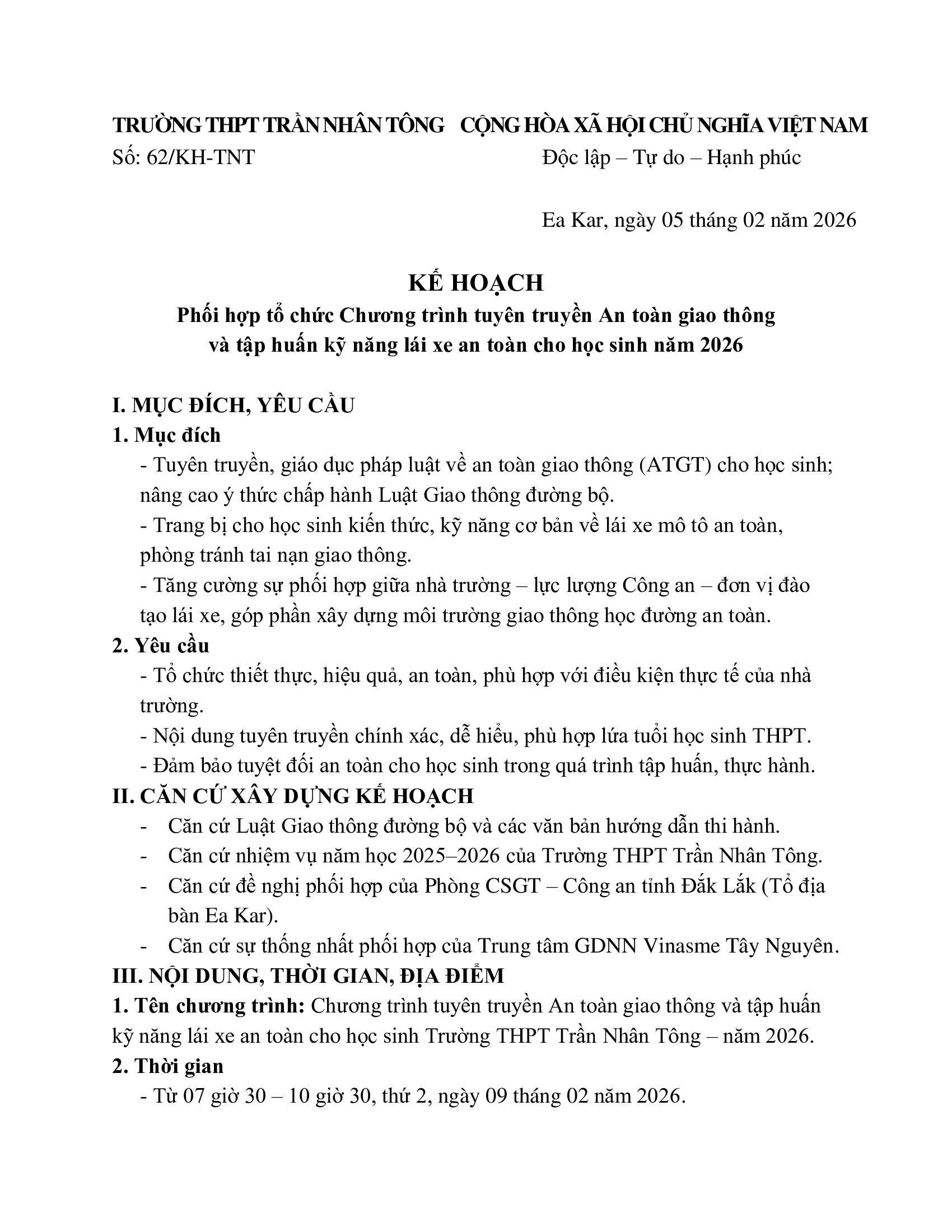 Kế hoạch phối hợp tổ chức chương trình tuyên truyền An toàn giao thông và tập huấn kỹ năng lái xe an toàn cho học sinh năm 2026