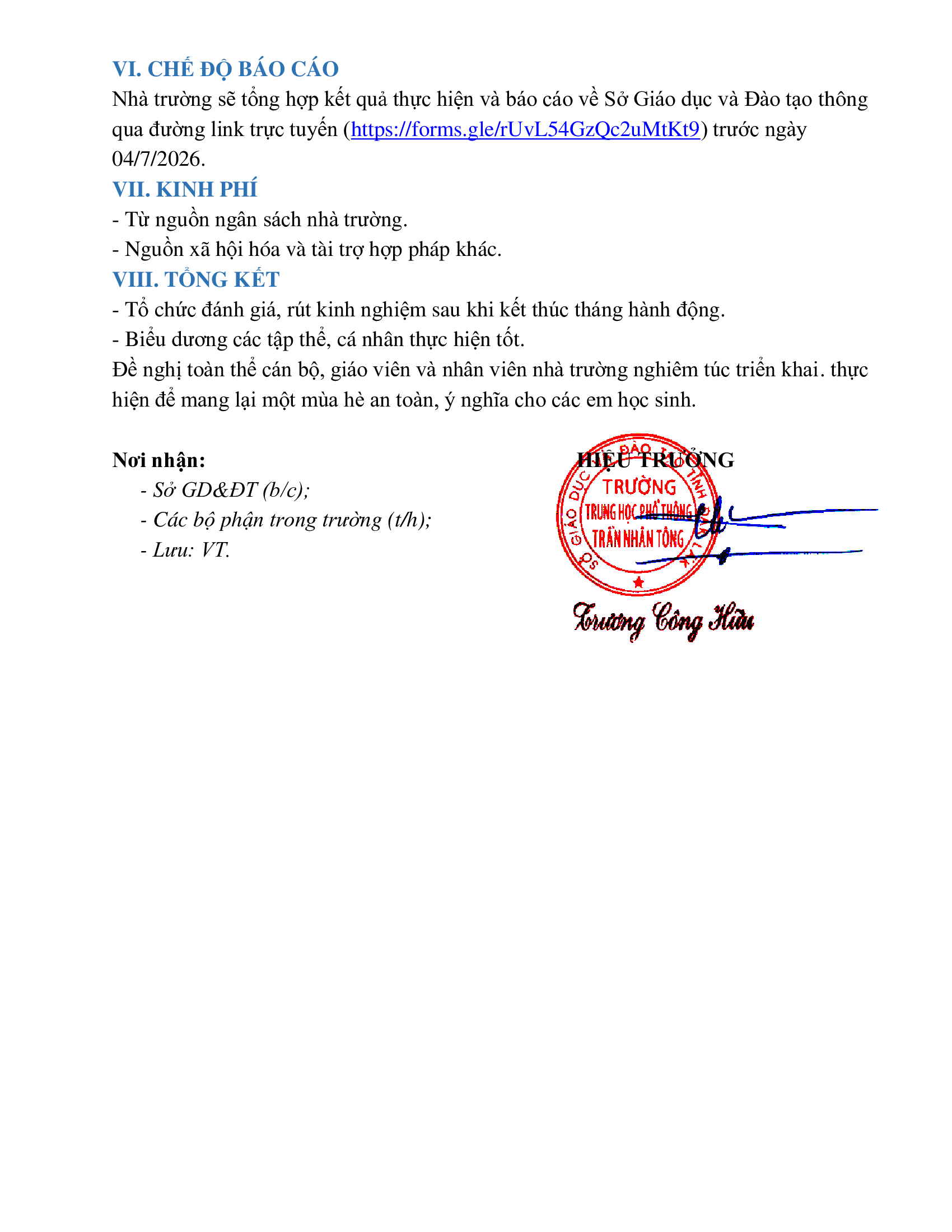 KẾ HOẠCH TUYỂN SINH VÀO LỚP 10 NĂM HỌC 2025-2026 TRƯỜNG THPT TRẦN NHÂN TÔNG