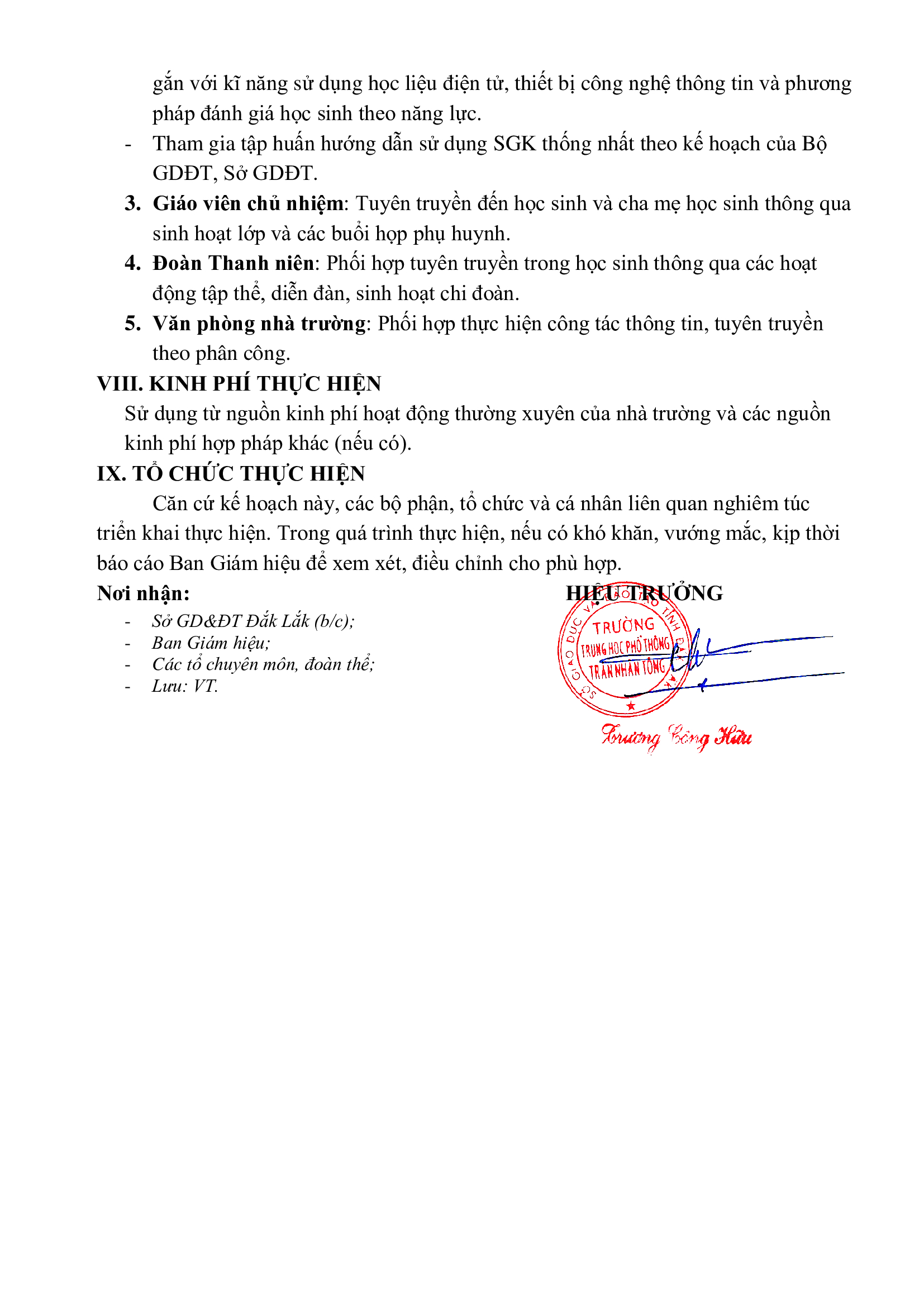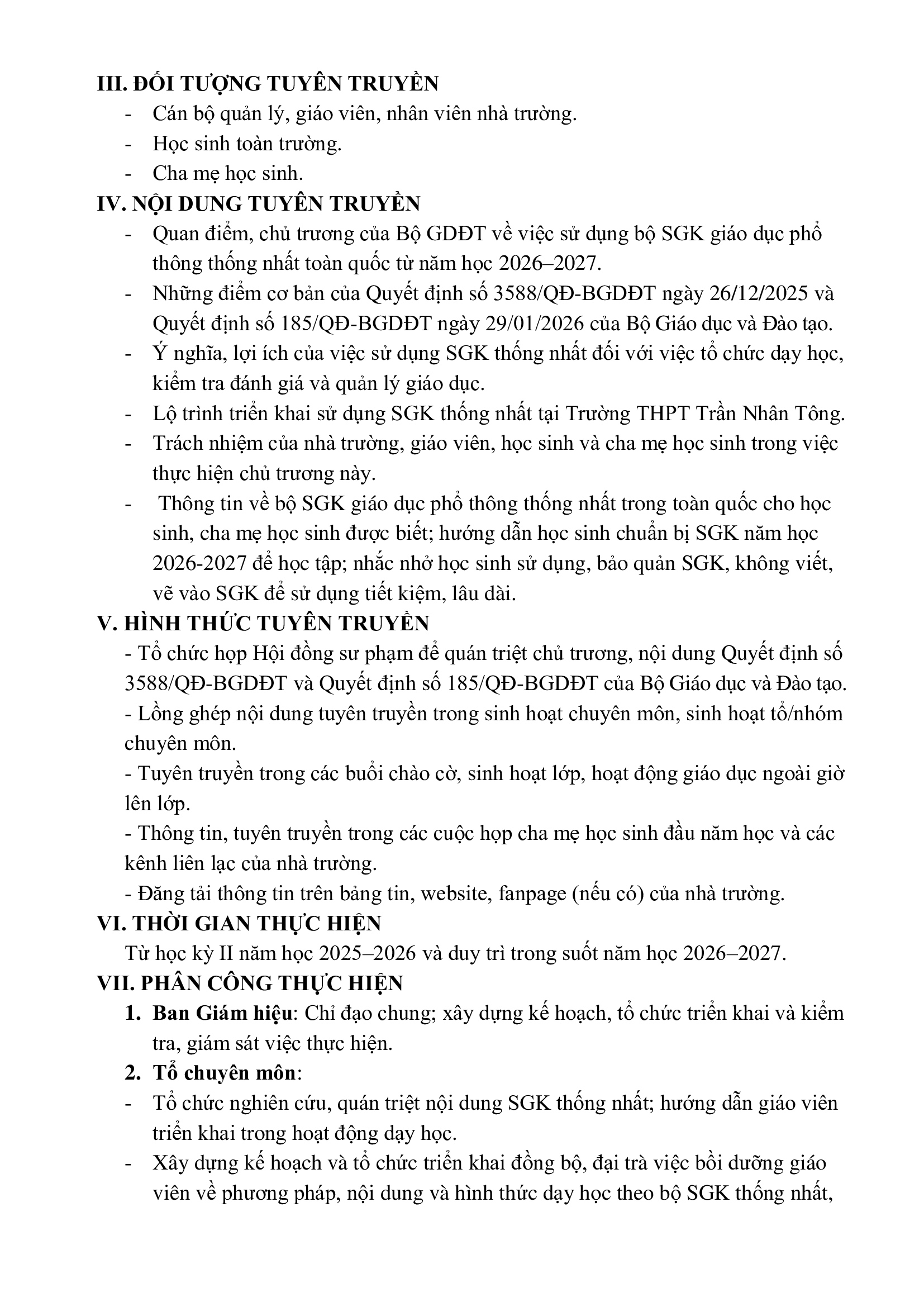Kế hoạch Truyền thông thực hiện Nghị quyết số 71-NQ/TW của Bộ Chính trị về đột phá phát triển giáo dục và đào tạo tại Trường THPT Trần Nhân Tông
