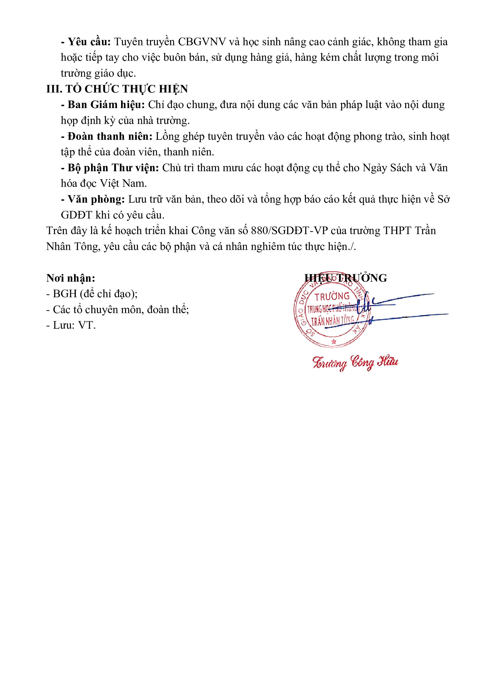 KẾ HOẠCH TUYỂN SINH VÀO LỚP 10 NĂM HỌC 2025-2026 TRƯỜNG THPT TRẦN NHÂN TÔNG